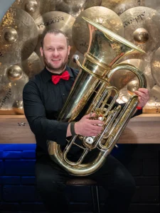 He is an Artist and plays exclusively on the instruments of the manufacturer Antoine Courtois, as anofficial representative for SE Europe and on the mouthpieces of Mercer&Barker UK.